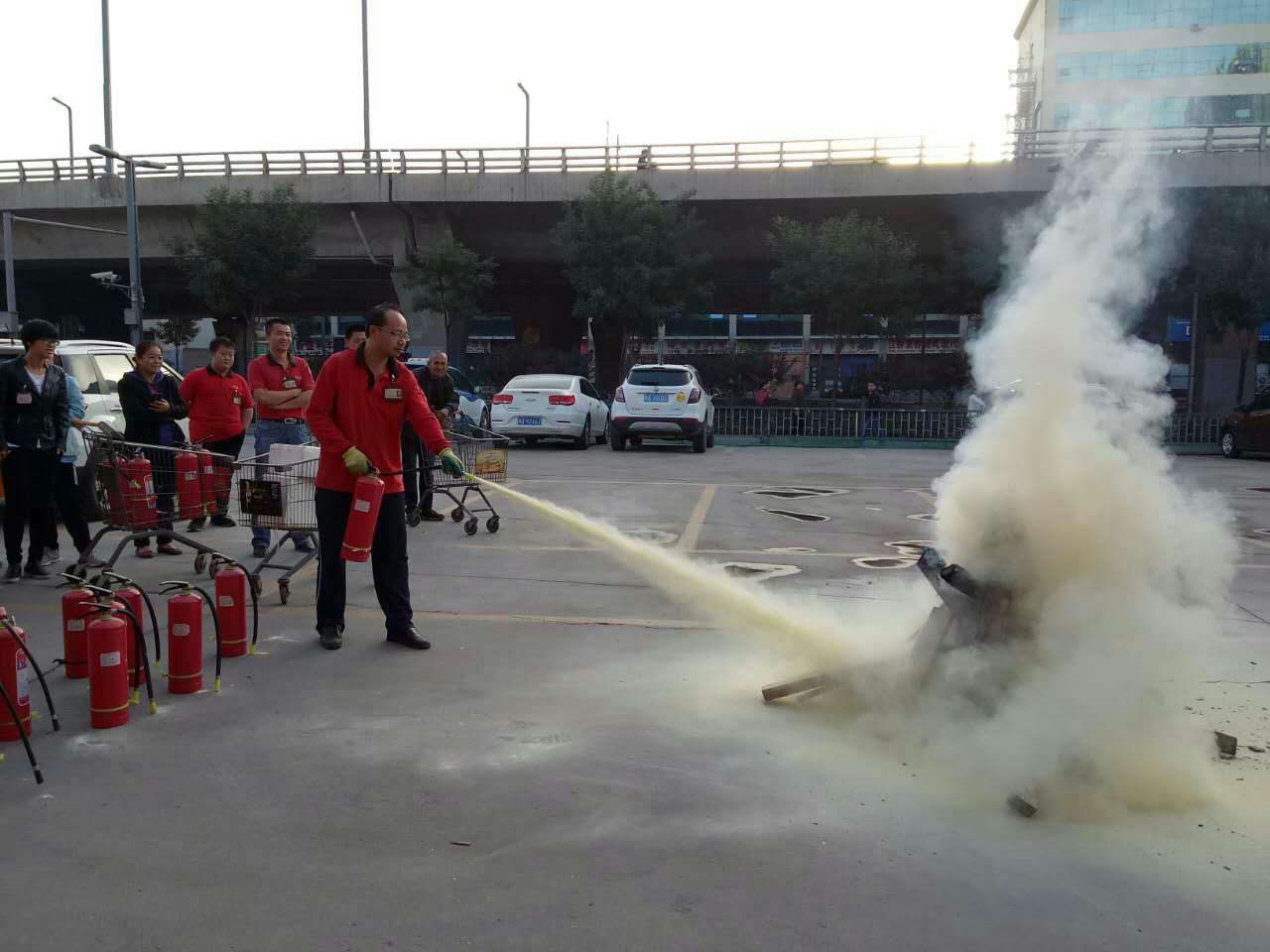 為進一步強化員工消防安全教育,增強全民消防意識,提高抗擊突發事件的應變能力,正確掌握使用滅火器的方法。2017年9月21、22日,山姆士建南店組織了以“消防你我他 安全靠大家”為主題的秋季消防演練。