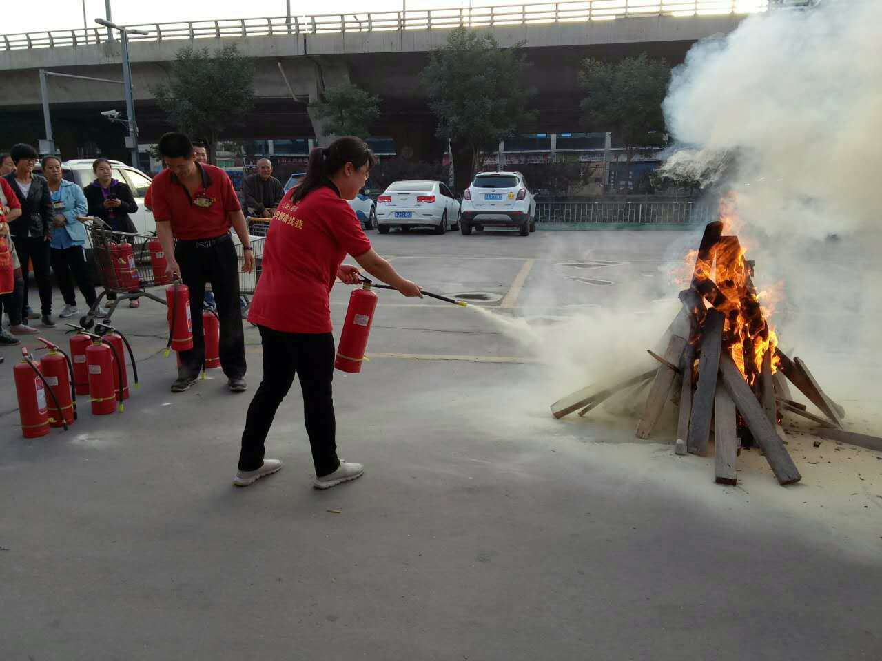 本次消防演練得到店長及各部組主管的大力支持,由門店防損經理講解滅火器的正確使用方法、步驟和滅火姿勢等,隨后安排員工現場實操滅火。為及時掌握和體驗真火的滅火方法,員工們都爭先到現場拿起滅火器按使用方法和滅火步驟進行實操滅火,參加演練的員工嚴謹認真,服從指揮,現場氣氛十分熱烈。